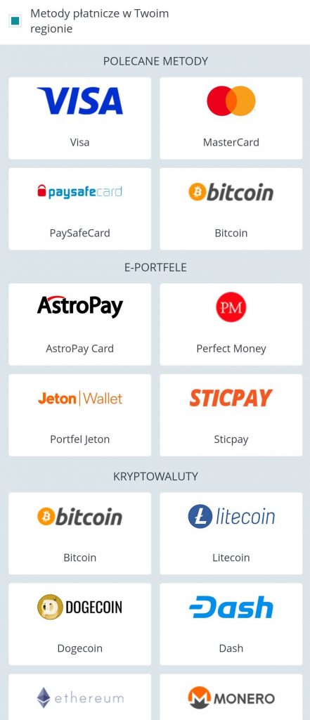 Wpłaty do kasyna 22bet robimy poniższymi sposobami. Ja wpłacam najczęściej kartą VISA i na kartę też robię wypłatę. Możliwa jest też wypłata na konto bankowe. Fajne jest to, że możemy wpłacić kartą Paysafecard. Jest to doładowanie takie jak do telefonu, kupujemy kod np. w Żabce czy w nocnym 😀 i podajemy go na stronie 22bet.