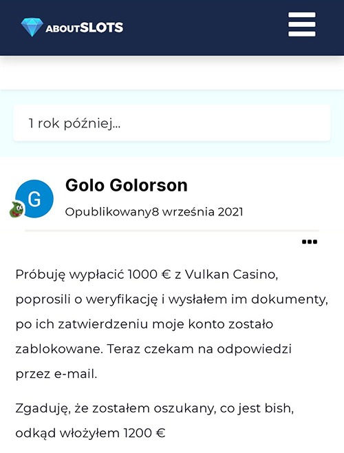 Ja zetknąłem się z niepochlebnymi informacjami nt. Vulkan Vegas już kilka lat temu. Vulkan był wtedy popularny w Polsce za sprawą polskiego streamera, który często w nim grał (już nie streamuje od dawna). Zacząłem szukać po prostu wpisując w google „vulkan vegas problem”. Wtedy niepochlebne opinie pojawiły się głównie na anglojęzycznych forach. Teraz są również w „polskim internecie”.